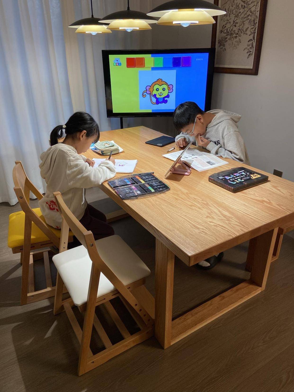 一张书桌,如何重构家的“公共区域”?“去客厅化”已成为当下家居改造的热门趋势,越来越多的家庭选择减少传统沙发电视的布局,转而打造更具功能复合性的共享空间。而「清平乐」开放式书房桌的设计,恰好为这种趋势提供了核心载体。与传统的靠墙式或封闭式书桌不同,「清平乐」通常被放置于客厅或开放区域的中心位置,其宽大台面与流畅的线条设计,本身就具有强烈的空间凝聚力。在实际使用场景中,这张书桌往往成为家庭的“活动岛”。白天,供孩子学习区与家长办公;傍晚,作为手工台或阅读区。这种设计打破了“书房”与“客厅”的物理与心理隔阂,让学习、工作与休闲生活自然地交织在一起。